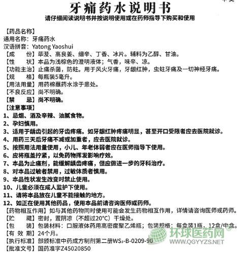 【功能主治】止痛殺菌,防蛀。用于風(fēng)火牙痛,牙齦紅腫,蟲蛀牙痛及一切神經(jīng)牙痛。