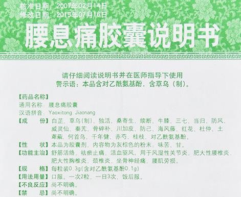- 本頁面信息僅供參考,請以產(chǎn)品實際附帶說明書為準(zhǔn)。 江西藥都仁和 腰息痛膠囊 說明書圖片版 江西藥都仁和 腰息痛膠囊