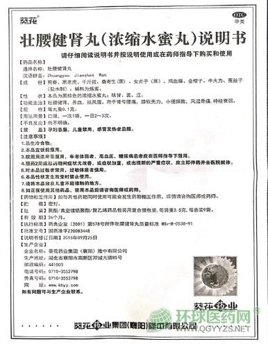 - 本頁(yè)面信息僅供參考,請(qǐng)以產(chǎn)品實(shí)際附帶說(shuō)明書為準(zhǔn)。 葵花藥業(yè) 壯腰健腎丸 說(shuō)明書文字版 規(guī) 格:每丸重0.1克 成Q