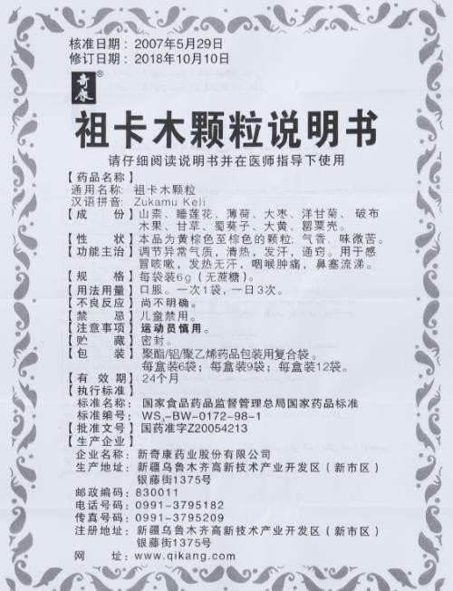 - 新疆奇康哈博維祖卡木顆粒說明書