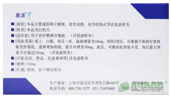 - 本頁面信息僅供參考,請以產(chǎn)品實(shí)際附帶說明書為準(zhǔn)。 上海奧派阿立哌唑片說明書 (10mg)圖片版 上海奧派阿立哌唑片說明書(10mg