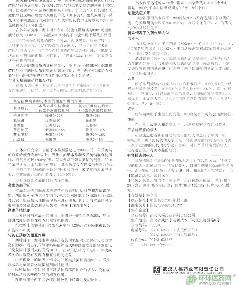 - 本頁面信息僅供參考,請以產(chǎn)品實(shí)際附帶說明書為準(zhǔn)。 人福藥業(yè)萬儀奧卡西平片外包裝 人福藥業(yè)萬儀奧卡西平片說明書圖