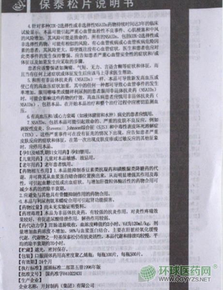 - 開(kāi)封制藥保泰松片說(shuō)明書(shū)