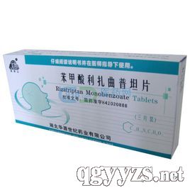 【成份】苯甲酸利扎曲普坦 化學(xué)名稱為:N,N-二甲基-2-[5-(1,2,4-三唑-1-基甲基)-1H-吲哚-3-基]乙胺苯甲酸鹽分子式:C15H19N5C7H6O2分子量:391.47