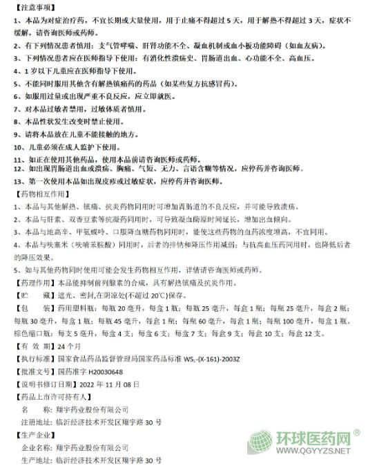 用前搖勻。本品為對癥治療藥,用于解熱連續(xù)應(yīng)用不得超過3天,用于止痛不得超過5天,癥狀未緩解情咨詢醫(yī)師或藥師。對本品過敏者禁用,對其它解熱鎮(zhèn)痛藥過敏者慎用。腎功能不全,高血壓,心功能不全,消化道潰瘍,血友病或其它出血性疾病(包括凝血或血小板功能異常)的患者,使用前必須咨詢醫(yī)師或藥師。服藥期間出現(xiàn)胃腸道出血,肝腎功能損害,視力,聽力障礙,血象異常應(yīng)立即停止用藥。孕婦,哺乳期婦女慎用。當本品性狀發(fā)生改變時禁用。如服用過量或發(fā)生嚴重不良反應(yīng)時應(yīng)立即就醫(yī)。兒童必須在成人監(jiān)護下使用。請將此藥物放在兒童不能接觸的地方。