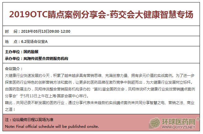 - 2019OTC睛點案例分享會-藥交會大健康智慧專場時間:2019-05-06