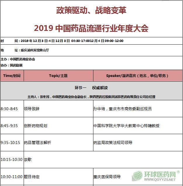 - 2019中國藥品流通行業(yè)年度大會(huì)時(shí)間:2019-11-22