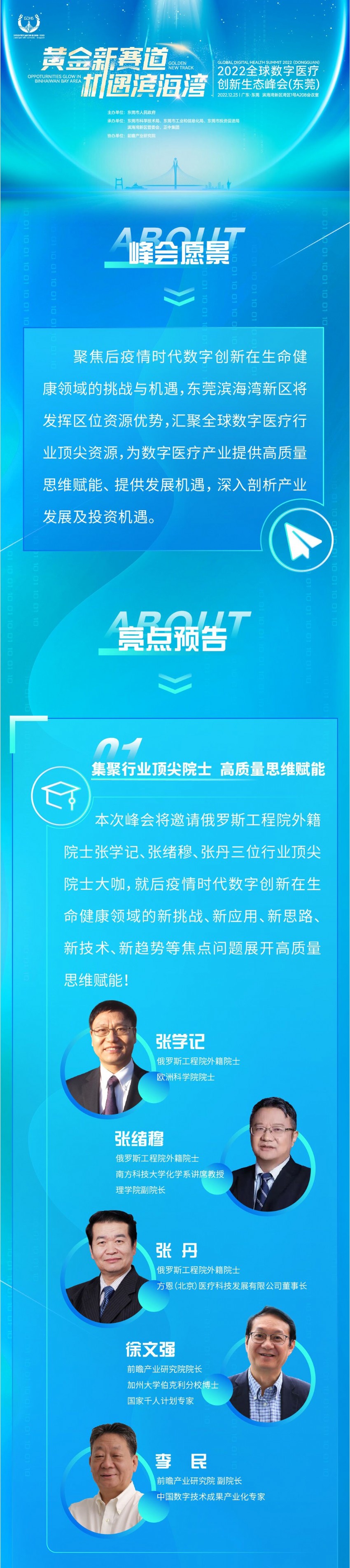 本次峰會(huì)集聚世界**大咖,有幸邀請(qǐng)到俄羅斯工程院外籍院士張學(xué)記,俄羅斯工程外籍院士、方恩(北京)醫(yī)療科技發(fā)展有限公司董事長(zhǎng)張丹,俄羅斯工程院外籍院士、南方科技大學(xué)化學(xué)系講座教授、理學(xué)院副院長(zhǎng)張緒穆,圍繞“中國(guó)數(shù)字醫(yī)療創(chuàng)新高質(zhì)量發(fā)展的挑戰(zhàn)與趨勢(shì)”、“新環(huán)境下的藥物研發(fā)的國(guó)際化策略”、“人工智能驅(qū)動(dòng)的藥物研發(fā)戰(zhàn)略”等議題發(fā)表主旨演講。同時(shí),大會(huì)將發(fā)布《2022-2027全球數(shù)字醫(yī)療產(chǎn)業(yè)經(jīng)濟(jì)發(fā)展藍(lán)皮書(shū)》,對(duì)數(shù)字醫(yī)療產(chǎn)業(yè)的高質(zhì)量發(fā)展進(jìn)行瞻望。