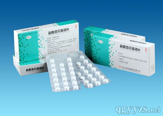 商品名合心爽,劑型有片劑、膠囊劑,為鈣離子通道阻滯劑,可以使血管平滑肌松弛,周圍血管阻力下降,血壓降低。主要用于心絞痛、輕中度高血壓、肥厚性心肌病、心動過速等癥。本品擴張周圍血管,降低血壓,減輕心臟工作負荷,從而減少氧的需要量,改善收縮壓和心率二重乘積,增加運動耐量并緩解勞力性心絞痛。本品與β受體阻滯藥合用,可致房室傳導阻滯。如與地高辛合用,可降低地高辛在腎臟清除,使血漿地高辛濃度增加20%~50%。也可使房室傳導時間延長。與丙吡胺合用,有協(xié)同負性肌力作用。與降壓藥合用,可致心動過緩或加強降壓作用。與普萘洛爾合用,可終止及預(yù)防房室結(jié)折返性心動過速發(fā)作。普萘洛爾還可減少因地爾硫卓引起的周圍血管擴張而反射性地增加交感神經(jīng)張力;與卡馬西平合用,可提高卡馬西平的血藥濃度而產(chǎn)生中毒癥狀。大鼠服用本品24個月,小鼠服用本品21個月未發(fā)現(xiàn)致癌作用。體外細菌實驗未發(fā)現(xiàn)致突變作用。動物實驗證實本品對生育力無明顯作用。