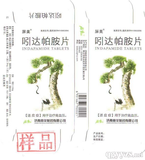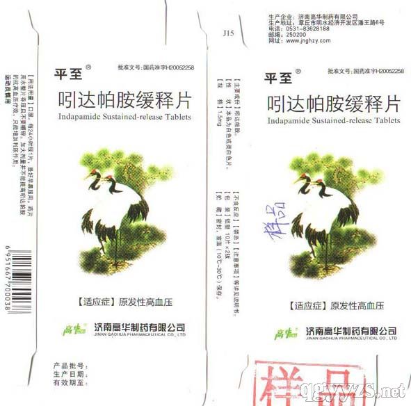 藥品名稱:吲達帕胺。