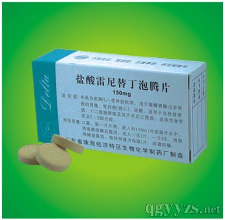 歷史發(fā)展: 雷尼替丁與西咪替丁一樣是目前應(yīng)用最廣泛的治療潰瘍病的藥品。由英國(guó)葛蘭素(glaxo)公司開(kāi)發(fā)。1976年由英國(guó)普賴(lài)斯(price)等合成,1979年布拉德肖(bradshaw)闡明其藥理,1980年貝斯塔(berstad)報(bào)告用于十二指腸潰瘍有效,1981年上市,在世界近百個(gè)國(guó)家應(yīng)用。我國(guó)于1985年由上海第六制藥廠(chǎng)生產(chǎn)。 藥物性狀: 常用其鹽酸鹽,為類(lèi)白色或淡黃色結(jié)晶性粉末;有異臭,味微苦帶澀;極易潮解,吸潮后顏色變深。在水或甲醇中易溶,在乙醇中略溶,在丙酮中幾乎不溶。熔點(diǎn)137℃—143℃。在注射用含氨基酸的營(yíng)養(yǎng)液中,置室溫下24小時(shí)內(nèi)可保持穩(wěn)定,溶液的顏色、pH、藥物含量等,均無(wú)明顯變化。 作用功效: 為一選擇性的H2受體拮抗劑,能有效地抑制組胺、五肽胃泌素及食物刺激后引起的胃酸分泌,降低胃酸和胃酶的活性,但對(duì)胃泌素及性激素的分泌無(wú)影響。作用比西咪替丁強(qiáng)5~8倍,對(duì)胃及十二指腸潰瘍的療效高,具有速效和長(zhǎng)效的特點(diǎn),副作用小而且安全。單次口服80mg后30~90分鐘,平均Cmax為165ng/ml,作用持續(xù)12小時(shí)。