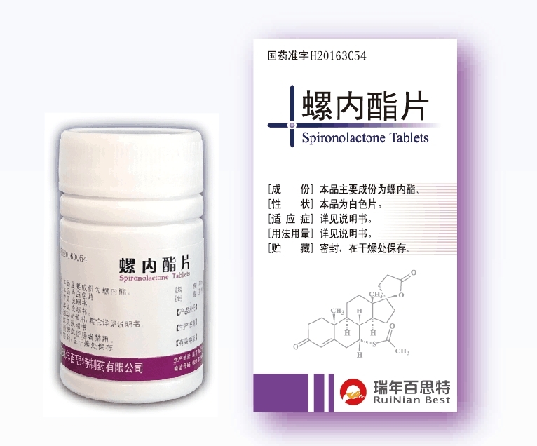 一種低效利尿劑,其結構與醛固酮相似,為醛固酮的競爭性抑制劑。作用于遠曲小管和集合管,阻斷Na+-K+和Na+-H+交換,結果Na+、Cl-和水排泄增多,K+、Mg2+和H+排泄減少,對Ca2+和P3-的作用不定。由于本藥僅作用于遠曲小管和集合管,對腎小管其他各段無作用,故利尿作用較弱。另外,本藥對腎小管以外的醛固酮靶器官也有作用。