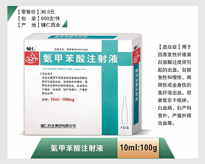 功能與主治:用于手術(shù)、內(nèi)科疾病中纖維蛋白溶解亢進(jìn)所致的出血。適用于肺、肝、胰、前列腺、甲狀腺、腎上腺等手術(shù)時(shí)的異常出血,婦產(chǎn)科和產(chǎn)后出血及肺結(jié)核咯血、痰中帶血、血尿,前列腺肥大出血、上消化道出血等。