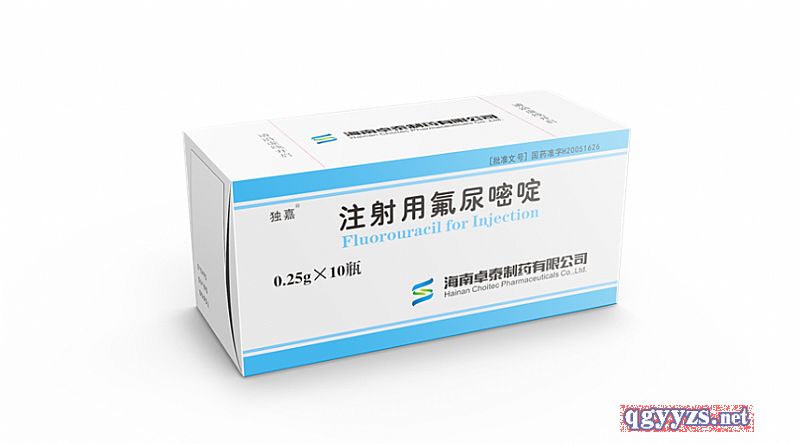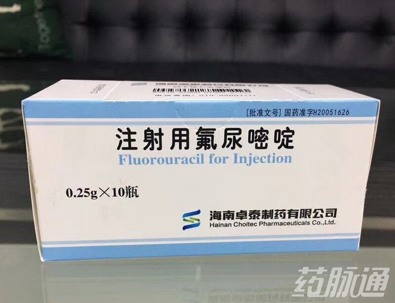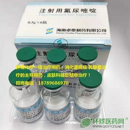 氟尿嘧啶是5-氟尿嘧啶溶于注射用水并加氫氧化鈉的無菌溶液,溶液的pH約為8.9。氟尿嘧啶是尿嘧啶的同類物,尿嘧啶是核糖核酸的一個組分。本藥是以抗代謝物而起作用,在細胞內(nèi)轉(zhuǎn)化為有效的氟尿嘧啶脫氧核苷酸后,通過阻斷脫氧核糖尿苷酸受細胞內(nèi)胸苷酸合成酶轉(zhuǎn)化為胸苷酸,而干擾DNA的合成。氟尿嘧啶同樣可以干擾RNA的合成. 靜脈用藥后,氟尿嘧啶廣泛分布于體液中,并在4小時內(nèi)從血中消失。它在被轉(zhuǎn)換成核苷酸后。被活躍分裂的組織及腫瘤所優(yōu)先攝取,氟尿嘧啶容易進入腦脊液中。約20%以原型從尿排泄,其余大部分在肝中由一般對尿嘧啶代謝的機制所代謝。五氟尿嘧啶和6-巰基嘌呤作為最早的抗癌藥物,均從海參中提煉。