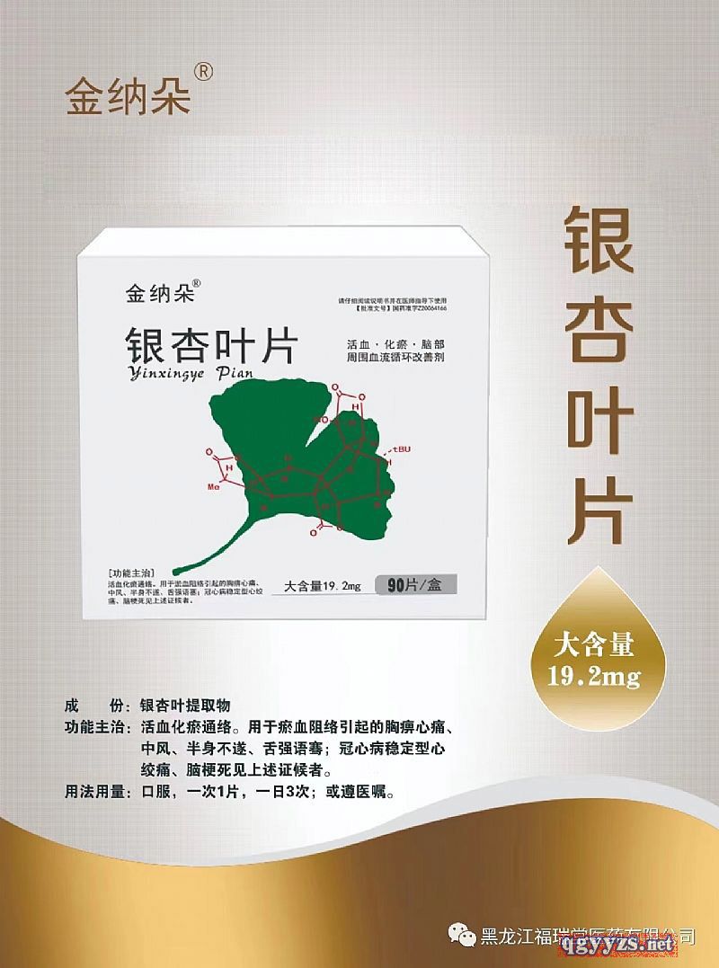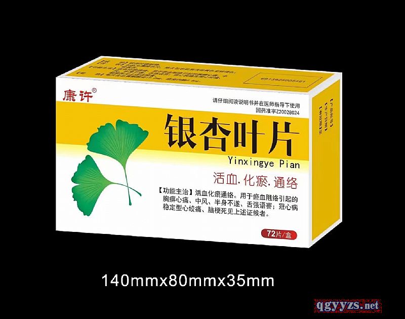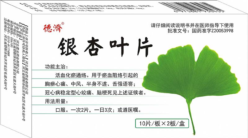每片含總黃酮醇苷9.6mg、萜類內酯2.4mg