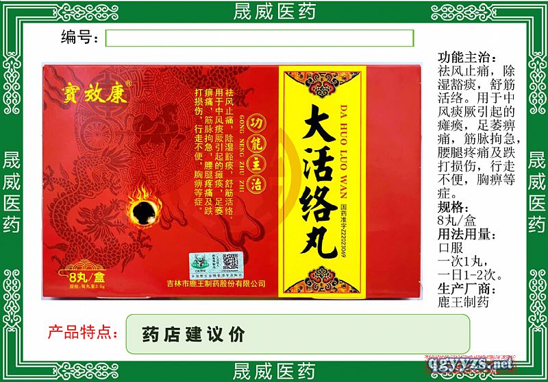 【主要成份】膽南星、制川烏、制草烏、地龍、乳香(制)、沒藥(制)。