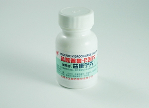 普魯卡因是局部麻醉藥。臨床常用其鹽酸鹽,又稱"奴佛卡因"。白色結(jié)晶或結(jié)晶性粉末,易溶于水。毒性比可卡因低。注射液中加入微量腎上腺素,可延長作用時間。用于浸潤麻醉、腰麻、"封閉療法"等。除用藥過量引起中樞神經(jīng)系統(tǒng)及心血管系統(tǒng)反應外,偶見過敏反應,用藥前應作皮膚過敏試驗。其代謝產(chǎn)物對氨苯甲酸 (PABA)能減弱磺胺類藥的抗菌效力。