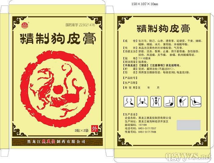 【藥品名稱】通用名稱:狗皮膏漢語(yǔ)拼音:Goupi Gao
