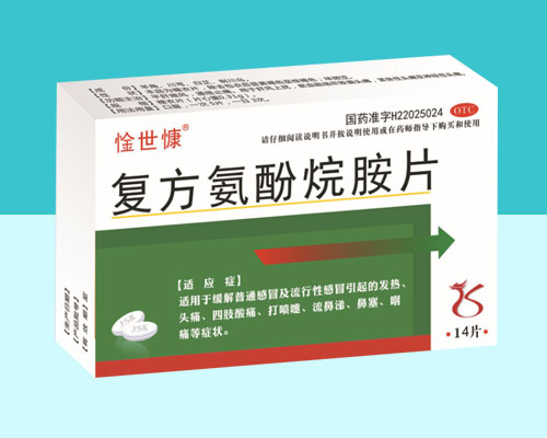 解熱鎮(zhèn)痛作用,其作用機制是通過抑制下視丘體溫調節(jié)中樞前列腺素(PGE2)合成和釋放而產(chǎn)生周圍血管擴張,引起出汗以達到解熱作用,同時能抑制緩激肽等的作用,提高痛閾而產(chǎn)生鎮(zhèn)痛作用。馬來酸氯苯那敏為抗組胺藥,能競爭性阻斷H1受體而產(chǎn)生抗過敏作用,同時還可消除或減輕鼻塞、打噴嚏、流鼻涕以及各種過敏癥狀,并具有鎮(zhèn)靜作用。金剛烷胺具有抗流感A型病毒作用,其余成分具有解熱、鎮(zhèn)痛、抗炎、抗過敏等作用。