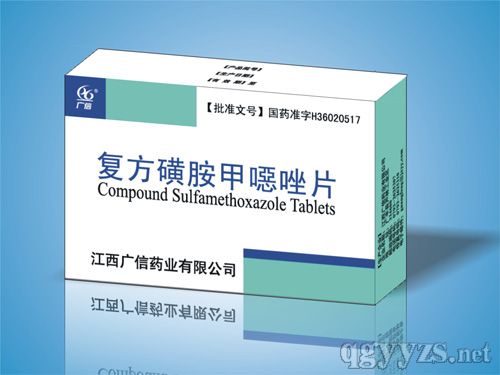 • 產(chǎn)品規(guī)格:每片含磺胺甲噁唑0.4g,甲氧芐啶0.08g。