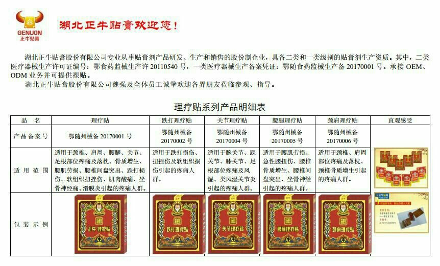 - 廠家:湖北正牛貼膏股份有限公司