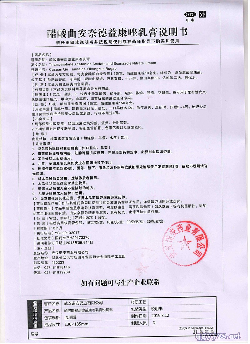 | 化學(xué)名稱 | 醋酸曲安奈德益康唑乳膏 |