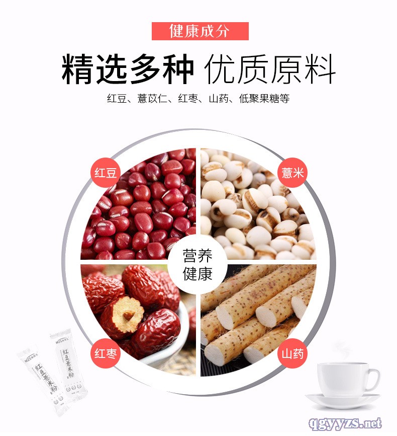 | 主要成分 | 紅豆、薏苡仁、紅棗、山藥、低聚果糖 |