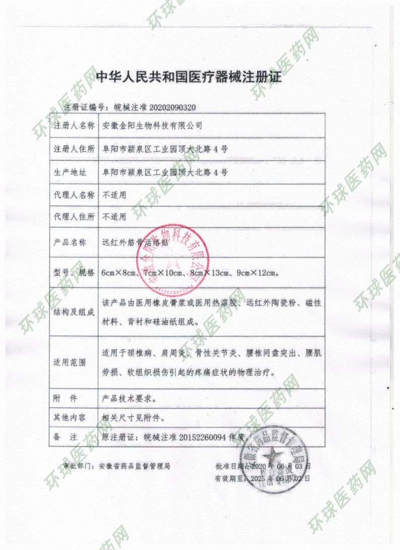 | 補(bǔ)充說明 | 主要用于頸椎病、肩周炎、骨性關(guān)節(jié)炎、腰椎間盤突出、腰肌勞損、軟組織損傷引起疼痛癥狀的物理治療。 遠(yuǎn)紅外筋骨活絡(luò)貼由醫(yī)用橡皮膏膠漿或醫(yī)用熱熔膠、磁性材料、遠(yuǎn)紅外陶瓷粉、背襯及硅油紙組成。遠(yuǎn)紅外陶瓷粉能夠輻射遠(yuǎn)紅外線被人體皮膚吸收產(chǎn)生熱能,從而達(dá)到改善微循環(huán)、增強(qiáng)肌體細(xì)胞活力及代謝等作用,再配以磁場(chǎng)物理療法,直接貼敷于患部,能有效促進(jìn)患部血液循環(huán),提高代謝機(jī)能,以達(dá)到祛寒、活血止痛、舒筋通絡(luò)之功效。 【禁忌癥】 •金屬異物局部,心臟起搏器局部; •嚴(yán)重心,肝,肺,腎衰竭者; •孕婦下腹部; •出血及有出血傾向者。 •嚴(yán)重過敏體質(zhì)者。 【注意事項(xiàng)、警示及提示性說明書】 •本品為一次性所使用。 •如皮膚出現(xiàn)紅腫,水泡等過敏現(xiàn)象應(yīng)立即停用本品。 |