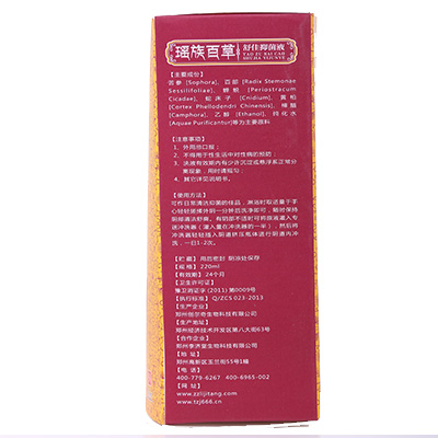 | 主要成分 | 苦參、黃柏、蛇床子、百部、薄荷、乙醇、純化水 |