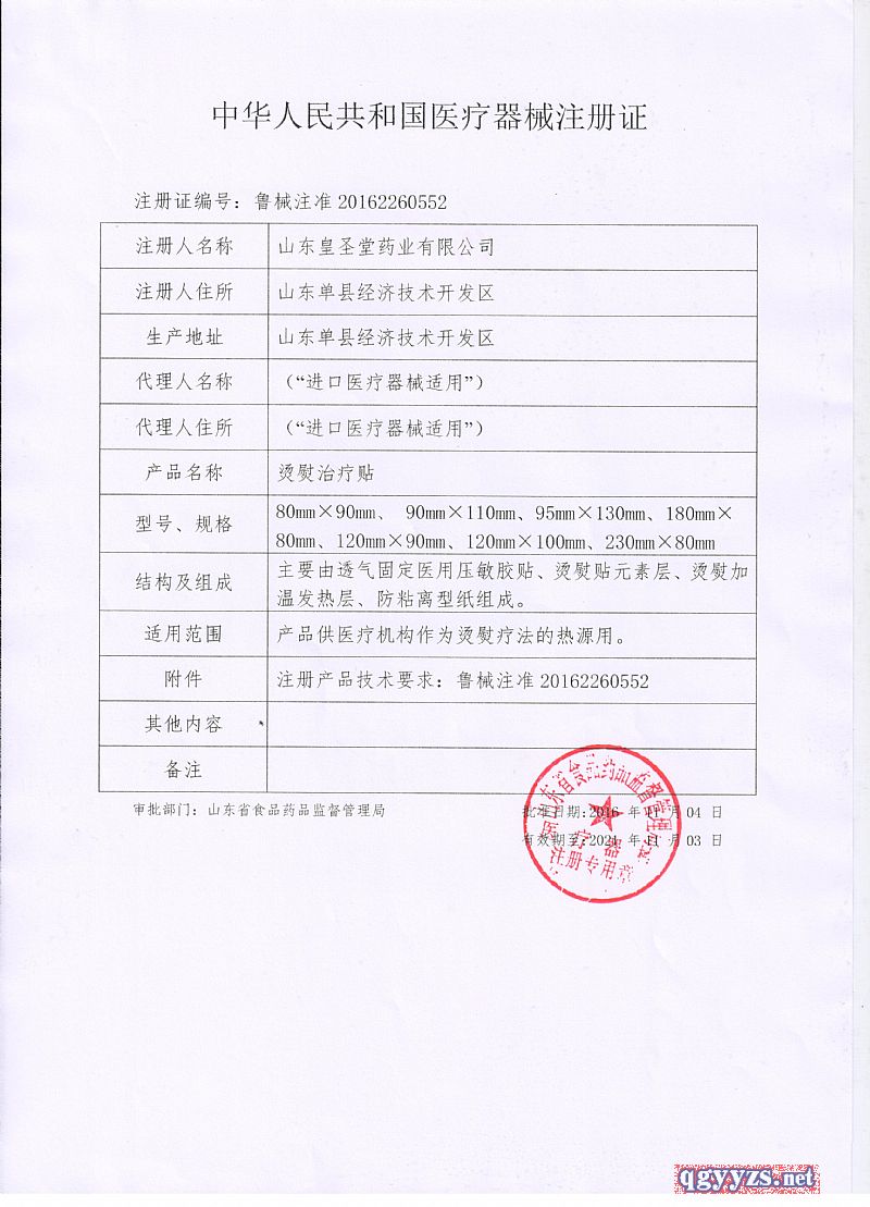 生產(chǎn)企業(yè): 山東皇圣堂醫(yī)療器械有限公司