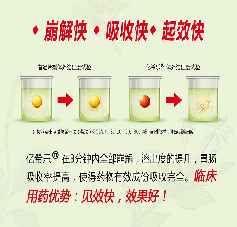 | 補(bǔ)充說明 | a:產(chǎn)品治療癥狀:腹瀉、腹痛、嘔吐 b:癥狀產(chǎn)生病因:急性胃腸炎、慢性結(jié)腸炎、小兒腸系膜淋巴結(jié)炎、消化不良 c:產(chǎn)品專利保護(hù),二十年專利保護(hù),一是產(chǎn)品保護(hù),二是提升產(chǎn)品制造工藝,解決中成藥難吸收問題 d:分散片獨(dú)特劑型,溶于水服用,1片溶于50ml溫水,2片溶于100ml溫水,3-4片溶于150ml溫水, e:產(chǎn)品療效:因?yàn)槿艹龆鹊奶嵘,腸胃吸收率提高,所以療效好! 。 f:分散片的臨床價(jià)值:解決難溶性藥物的溶出和吸收問題,使得藥物有效成份濃度高,吸收完全,同時(shí)縮短了藥物作用時(shí)間,有效減少疾病對(duì)患者身體的損傷和帶來痛苦,避免了并發(fā)癥的發(fā)生。 |
