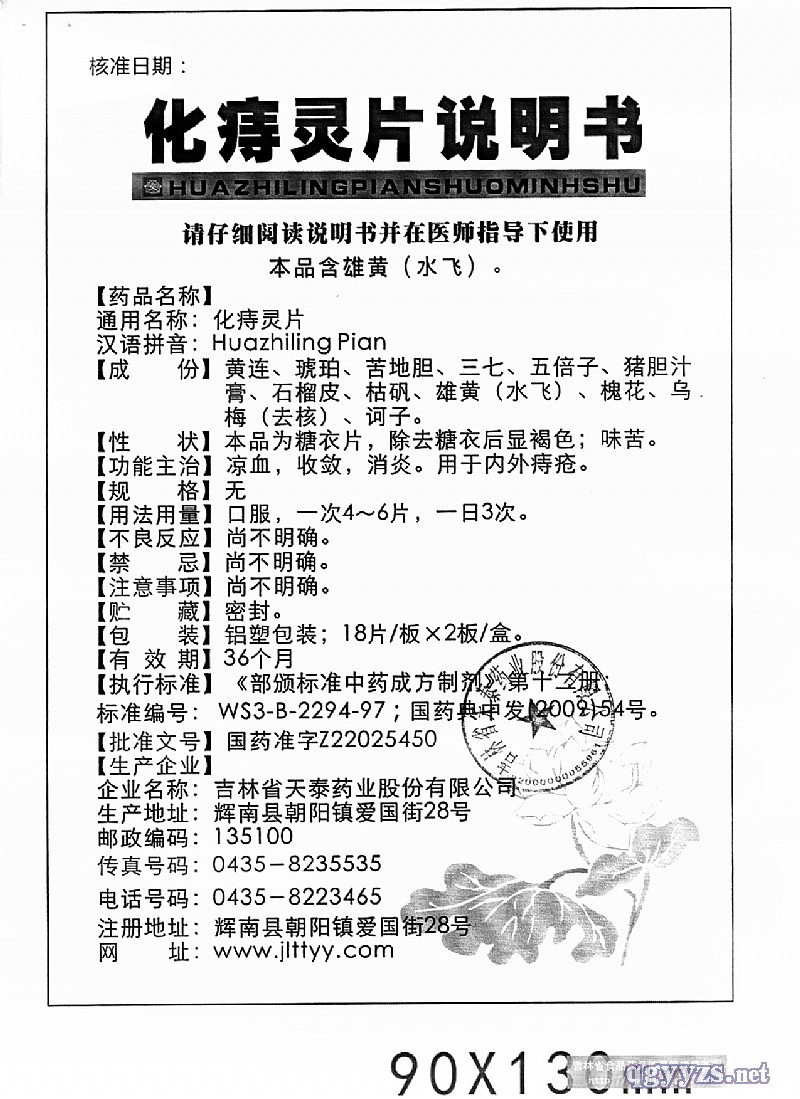 | 通用名稱 | 化痔靈片 |