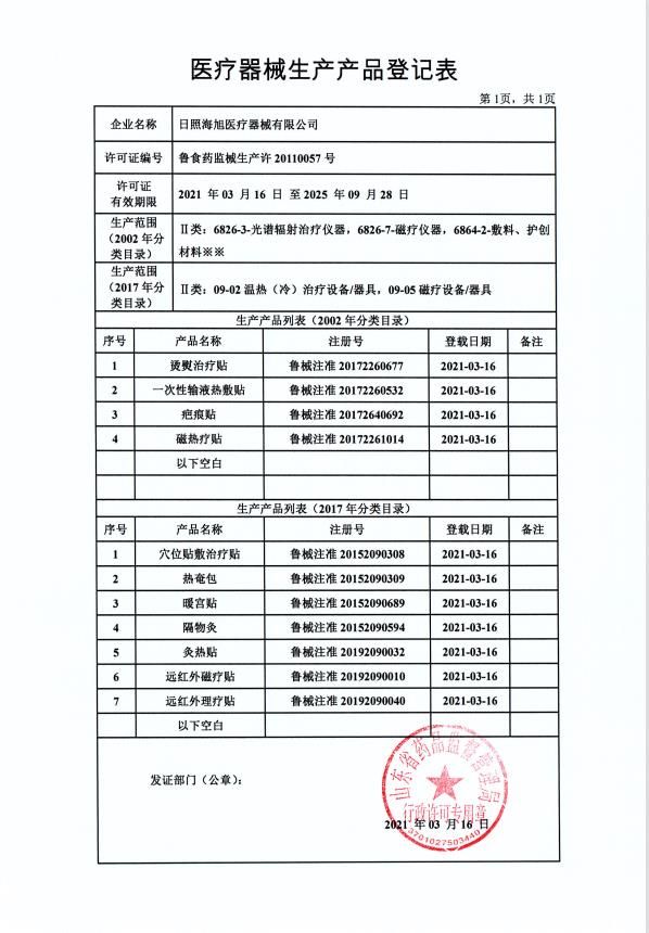 生產(chǎn)企業(yè): 日照海旭醫(yī)療器械有限公司