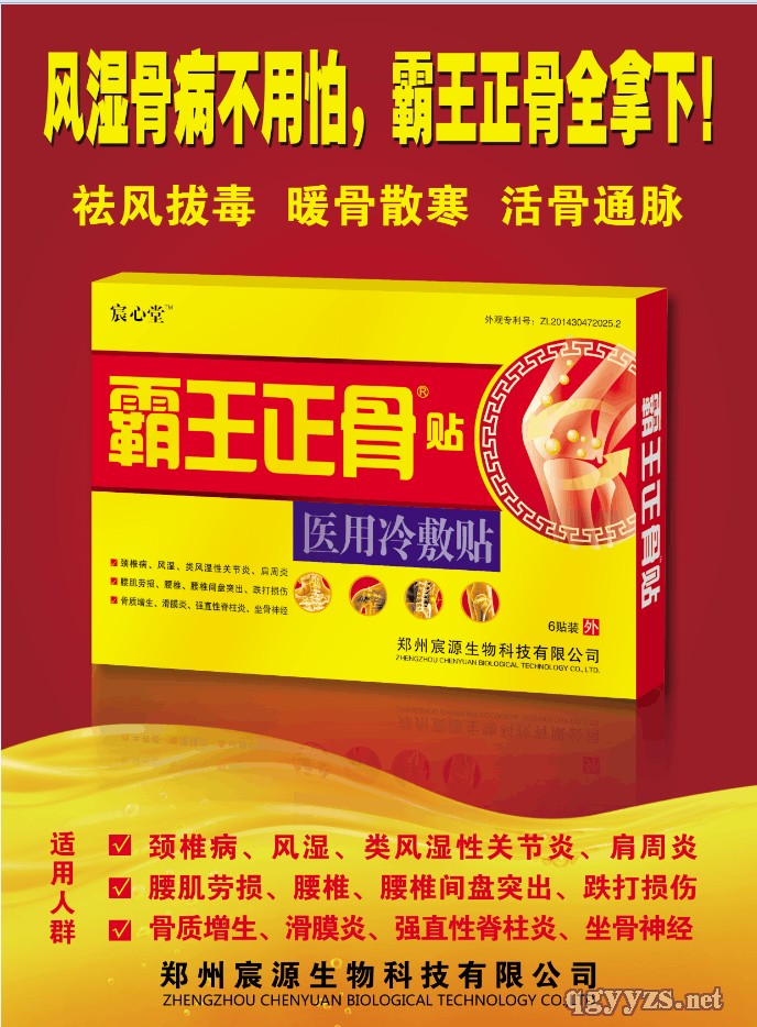 | 產(chǎn)品賣點(diǎn) | 霸王正骨貼的賣點(diǎn): :一類器械號,藥店,診所,會銷,養(yǎng)生館,商貿(mào)公司多種渠道可銷售; :針對風(fēng)濕骨病12種病癥,涵蓋更多消費(fèi)人群,更多人選擇 :國家專利包裝,大氣上檔次 :效果明顯,5**發(fā)熱,10**止痛,高 新批號,有效期三年 |