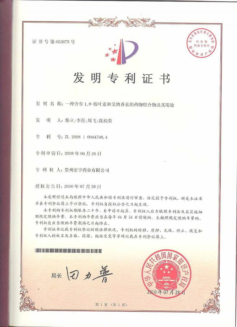 生產(chǎn)企業(yè): 貴州宏宇藥業(yè)有限公司