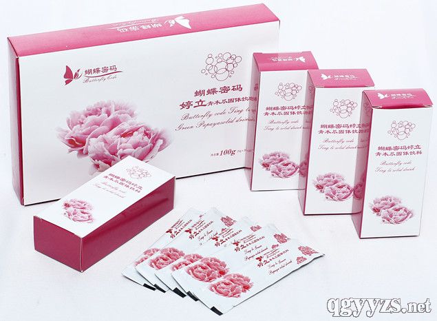 | 產(chǎn)品用途 | 品名:蝴蝶密碼婷立青木瓜固體飲料 產(chǎn)地:臺灣原裝進(jìn)口 成份配料:青木瓜粉,膠原蛋白,大豆粉,蜂王漿凍干粉,維生素C,維生素D,草莓粉,草莓香精,二氧化硅,葡萄糖,果糖等成份,豐胸效果**,有正規(guī)海關(guān)批件。 規(guī)格:5克/包 服用量及方法:溫水沖服,或用果汁沖服,一天一次,一次1至2包。 保質(zhì)期:24個月 |