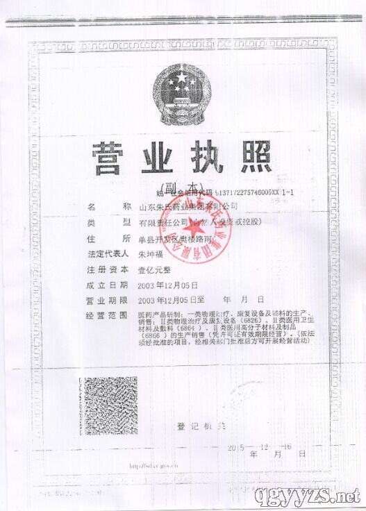 生產(chǎn)企業(yè): 山東朱氏藥業(yè)集團(tuán)