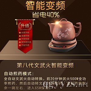 | 產(chǎn)品用途 | 家用煎藥煲湯 全自動煎藥,煎好≈1碗 特有第二遍煎藥功能 文武火自動變頻轉(zhuǎn)換 可手動靈活設(shè)置文武火時間 定時預(yù)約功能 省電能手,三碗煎成一碗僅需0.3度電 特有防水專利,淋水不漏電 235度干燒斷電保護 特有煲湯/煲粥/隔水燉功能,一站式解決! |