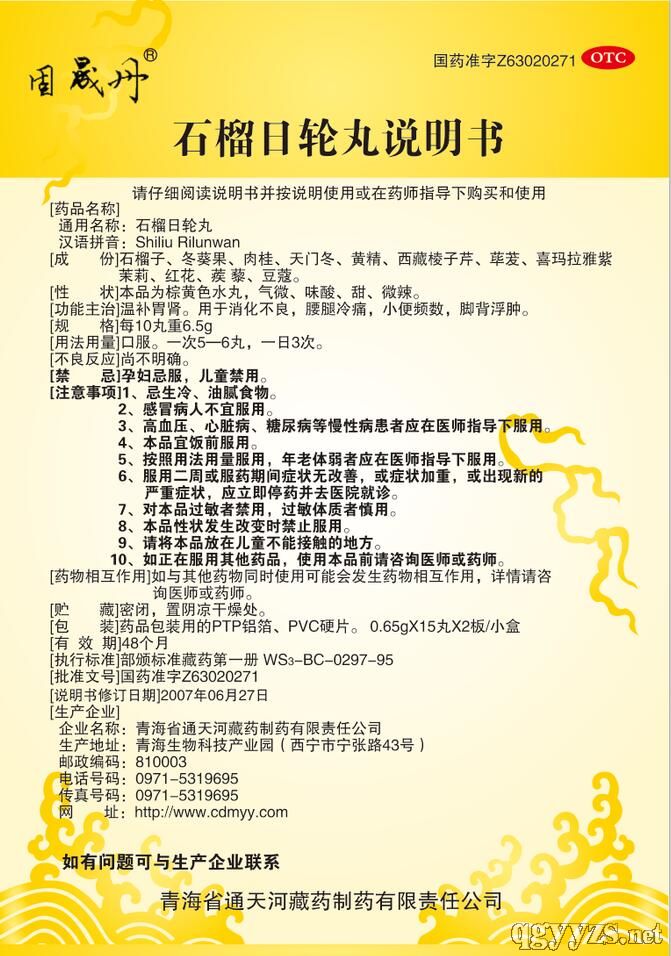 生產(chǎn)企業(yè): 青海省通天河藏藥制藥有限責(zé)任公司