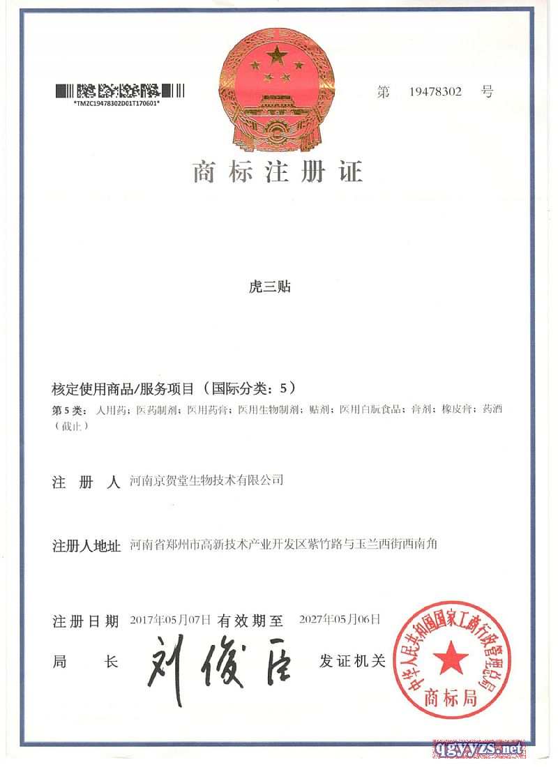 | 注冊商標(biāo) | 虎三貼 |