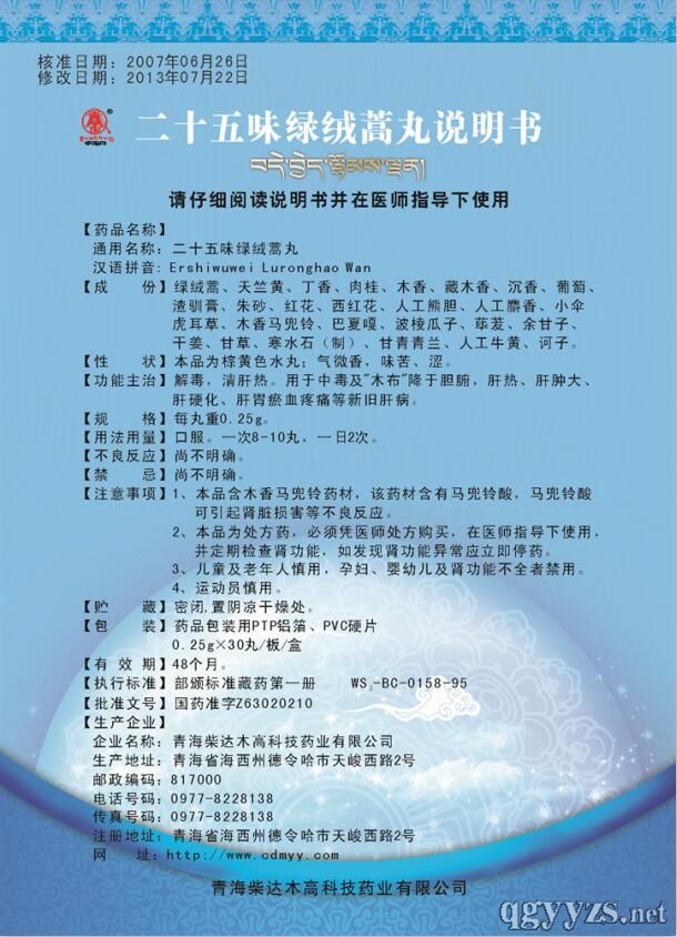| 通用名稱 | 二十五味綠絨蒿丸 |