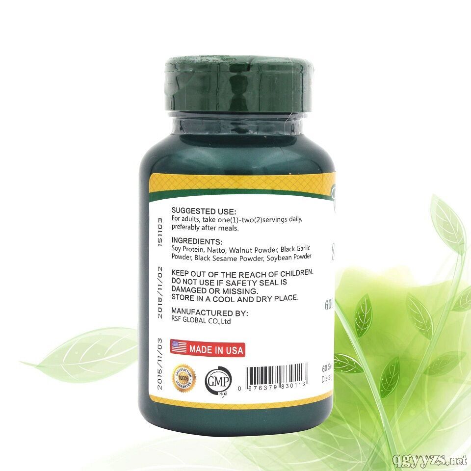 | 主要成分 | 大豆蛋白(含精氨酸250mg)、核桃仁粉、黑蒜粉、黑芝麻、黃豆粉、明膠 |