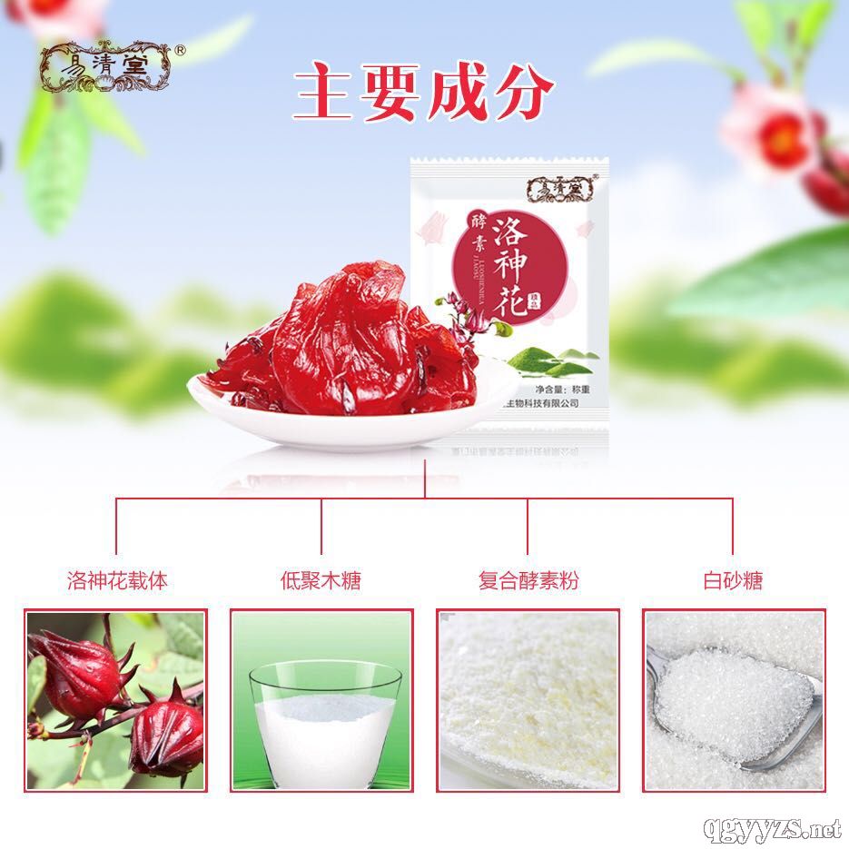 | 主要成分 | 洛神花萼、低聚木糖、復(fù)合酵素粉 |
