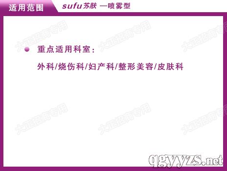 | 產(chǎn)品用途 | 蘇膚醫(yī)用殼聚糖創(chuàng)面修復膜(噴霧型)是廣泛應用于燒燙傷科、皮膚美容科、外科等科室的殼聚糖創(chuàng)面修復噴劑,專業(yè)用于外傷創(chuàng)面、手術創(chuàng)面、燒燙傷創(chuàng)面、潰瘍創(chuàng)面的覆蓋隔離,起到抑菌護長,促進創(chuàng)面愈合,抑制疤痕形成的作用。 重點適用科室:外科、燒傷科、婦產(chǎn)科、整形美容科、皮膚科等 |