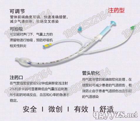 | 補(bǔ)充說明 | 同時(shí)集可調(diào)節(jié)、可抽吸、注藥口、管頭軟化等功能于一身的發(fā)明專利產(chǎn)品 可調(diào)節(jié):可調(diào)節(jié)前端曲度設(shè)計(jì)可根據(jù)患者喉咽部的情況,通過控制調(diào)節(jié)導(dǎo)桿來調(diào)整管體插入方向,快速準(zhǔn)確插管,減少氣道創(chuàng)傷,杜絕交叉感染。 可抽吸:抽液孔與抽液管連通抽液管末端有接頭,可與注射器或負(fù)壓裝置連接,定期對聲門下、氣囊上方的滯留物進(jìn)行沖洗,并抽吸滯留物?捎行ьA(yù)防控制和減少呼吸機(jī)相關(guān)性肺炎的發(fā)生。 注藥口:麻醉藥物、消炎藥物或清洗液通過球囊上方的注藥孔,作用于氣道黏膜,氣道減少患者嗆咳、惡性嘔吐等不適反應(yīng)及感染幾率。 管頭軟化:經(jīng)特殊工藝處理,導(dǎo)管前端硬度有別于導(dǎo)管管體。柔化處理的導(dǎo)管前端在插管過程中,能大大減少對氣道管壁黏膜的損傷。 |
