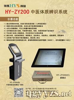 | 補(bǔ)充說明 | HY-ZY200中醫(yī)體質(zhì)辨識儀技術(shù)參數(shù)及配置標(biāo)準(zhǔn) 一、軟件功能: 1)通過回答標(biāo)準(zhǔn)問卷,軟件自動計算出體質(zhì)類型 2)根據(jù)計算出的體質(zhì)類型,軟件自動生成中醫(yī)調(diào)理保健建議 3)軟件采用大型數(shù)據(jù)庫,可以大容量存儲體質(zhì)檔案 4)軟件采用智能化統(tǒng)計功能,可按照年齡段、性別、體質(zhì)類別進(jìn)行自動統(tǒng)計 5) 軟件可自動匯總病人完整信息,并支持導(dǎo)出匯總信息表格 6)軟件建議豐富,包括體質(zhì)特征、調(diào)理要點(diǎn)、運(yùn)動養(yǎng)生、飲食養(yǎng)生、起居調(diào)理、用藥參考 7)軟件支持客戶自行修改中醫(yī)保健建議,建議更人性化 二、硬件配置: 1)電腦主機(jī):中央處理器:Intel雙核2.80GHz、2.79GHz處理 器,內(nèi)存:≥2G,硬盤:≥500G,高清攝像頭: ≥130萬,鼠標(biāo),鍵盤,耳麥 2)顯示器:19英寸SGS紅外智能感應(yīng)觸摸屏液晶顯示器。無需對 屏表面直接施加壓力,使用可靠不偏移。 3)操作臺:人體工程學(xué)和美學(xué)原理設(shè)計的ABS塑料環(huán)保推車, 極富時代氣息;提供多個標(biāo)準(zhǔn)網(wǎng)絡(luò)接口,多媒體系統(tǒng),提供 高保真立體聲,聲音自然富動感 4)工作環(huán)境:溫度:+5℃ - +35℃,相對濕度:40% - 80% 5)電源:電壓:AC220V±10% 50Hz±1Hz,功耗:<200W 6)打印機(jī):彩色噴墨照片專用打印機(jī) 三、標(biāo)準(zhǔn)依據(jù): HY-ZY200中醫(yī)體質(zhì)辨識儀由該公司研制生產(chǎn)的現(xiàn)代化人體健康體檢設(shè)備,以中華中醫(yī)藥學(xué)會頒發(fā)的《中醫(yī)體質(zhì)辨識判定》標(biāo)準(zhǔn)為基礎(chǔ),通過科學(xué)算法,軟件智能化判斷,自動生成體質(zhì)報告。軟件從形體特征、常見表現(xiàn)、心理特征、發(fā)病傾向、對外界環(huán)境適應(yīng)能力等方面進(jìn)行了體質(zhì)特征表述,采納全國名中醫(yī)中醫(yī)調(diào)理建議,其中包括調(diào)理要點(diǎn)、運(yùn)動養(yǎng)生、飲食養(yǎng)生、起居調(diào)理、用藥參考等建議。 |