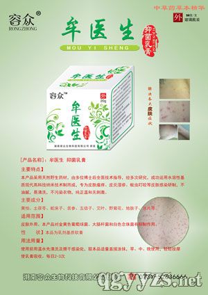 | 補充說明 | 皮膚病是有關皮膚的疾病,是嚴重影響人民健康的常見病、多發(fā)病之一,如麻風、疥瘡、真菌病、皮膚細菌感染等。皮膚病是皮膚(包括毛發(fā)和甲)受到內外因素的影響后,其形態(tài)、結構和功能均發(fā)生變化,產生病理過程,并相應的產生**臨床先后表現(xiàn)。皮膚病的發(fā)病率很高,多比較輕,常不影響健康,但少數(shù)較重甚至可以危及生命。 《牟醫(yī)生抑菌乳膏》對引起(日光性皮炎、神經性皮炎、過敏性皮炎)、濕疹、皮膚癬、龜頭炎、女陰瘙癢、蚊蟲叮咬、白色糖疹、蕁麻疹感染的葡萄球菌、念珠菌、霉菌、真菌、大腸桿菌有較強的抑殺作用并能預防皮膚感染。 產品規(guī)格]: 20g/支 [產品成分]: 黃柏、土茯苓、蛇床子、苦參、五倍子、艾葉、野菊花、地膚子、冰片等。 [用法用量]:皮膚外用,使用本品前用溫水洗凈,取本品適量涂抹不適處,早中晚使用,輕輕按摩使乳膏吸收。 [產品功效]:對引起(日光性皮炎、神經性皮炎、過敏性皮炎)、濕疹、皮膚癬、龜頭炎、外陰瘙癢、蚊蟲叮咬、白色糖疹、蕁麻疹感染的葡萄球菌、鏈珠菌、霉菌、真菌、大腸桿菌有較強的抑殺作用并能預防皮膚感染。 |
