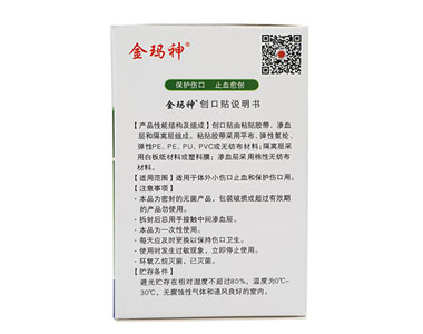 | 產(chǎn)品名稱 | 金瑪神舒適透氣創(chuàng)口貼100片裝 |