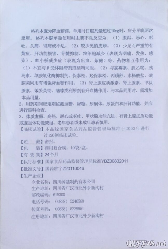 生產(chǎn)企業(yè): 四川源基制藥有限公司