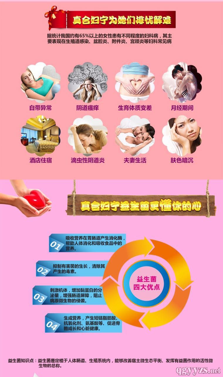 | 補(bǔ)充說明 | 1、吸收營(yíng)養(yǎng)在胃腸道產(chǎn)生消化酶,幫助人體消化和吸收食品中的營(yíng)養(yǎng)。 2、抑制有害菌的生長(zhǎng),清除其產(chǎn)生的毒素。 3、刺激機(jī)體,增加粘蛋白的分泌量。增強(qiáng)腸道屏障,阻止病原微生物的侵襲。 4、生成營(yíng)養(yǎng),產(chǎn)生短鏈脂肪酸,抗氧化劑,氨基酸等,促進(jìn)骨骼成長(zhǎng)和心臟健康。 相關(guān)文獻(xiàn)證實(shí):活性乳酸菌對(duì)于非特異性陰道炎、念珠菌陰道炎、滴蟲性陰道炎、都具有的率(87%~)及極低的復(fù)發(fā)率。 |